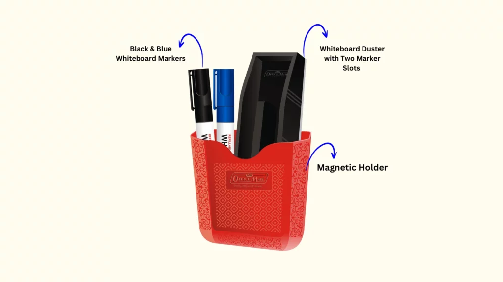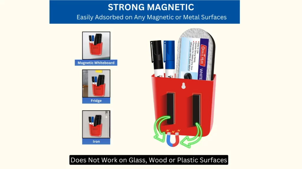 - Magnetic Holder: Sticks securely to your whiteboard or any magnetic surface, keeping your tools within reach and your workspace clutter-free.