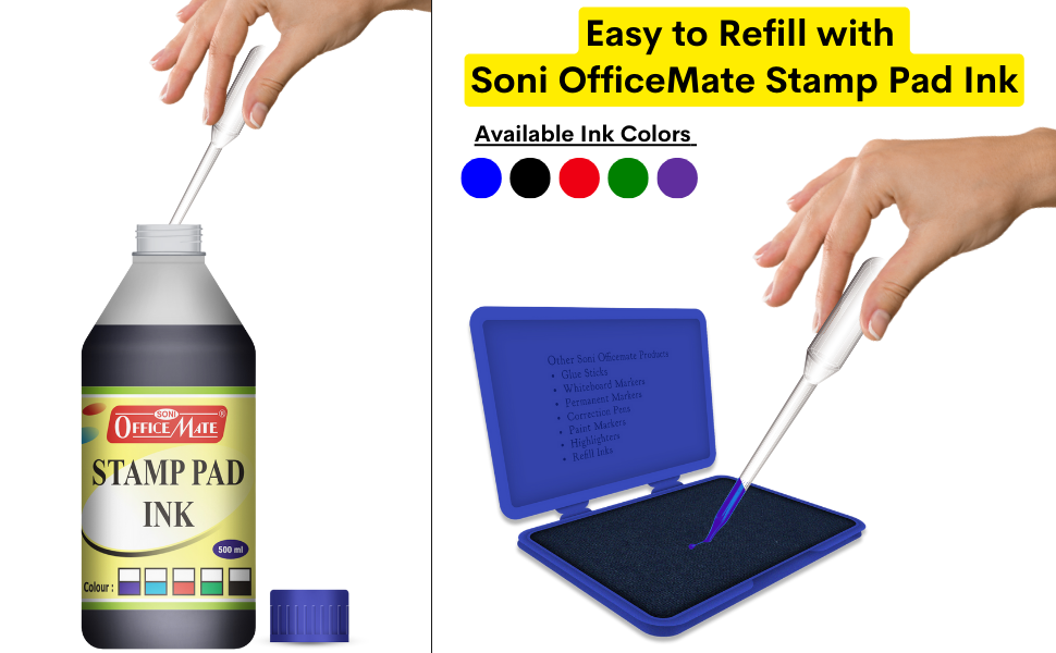 High-quality stamp pads, like those in blue and other colors, ensure crisp, clean, and precise impressions. These pads distribute ink evenly, providing consistent results each time.